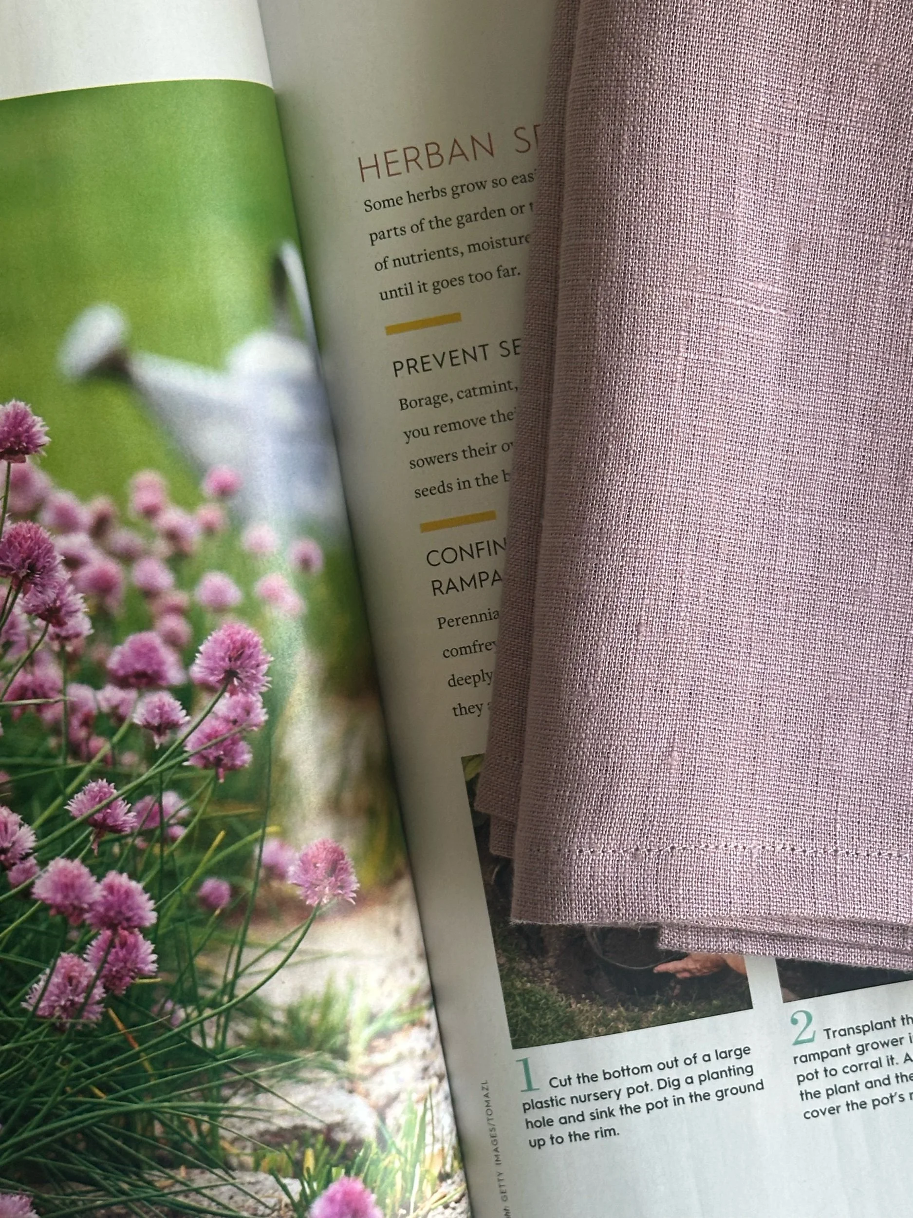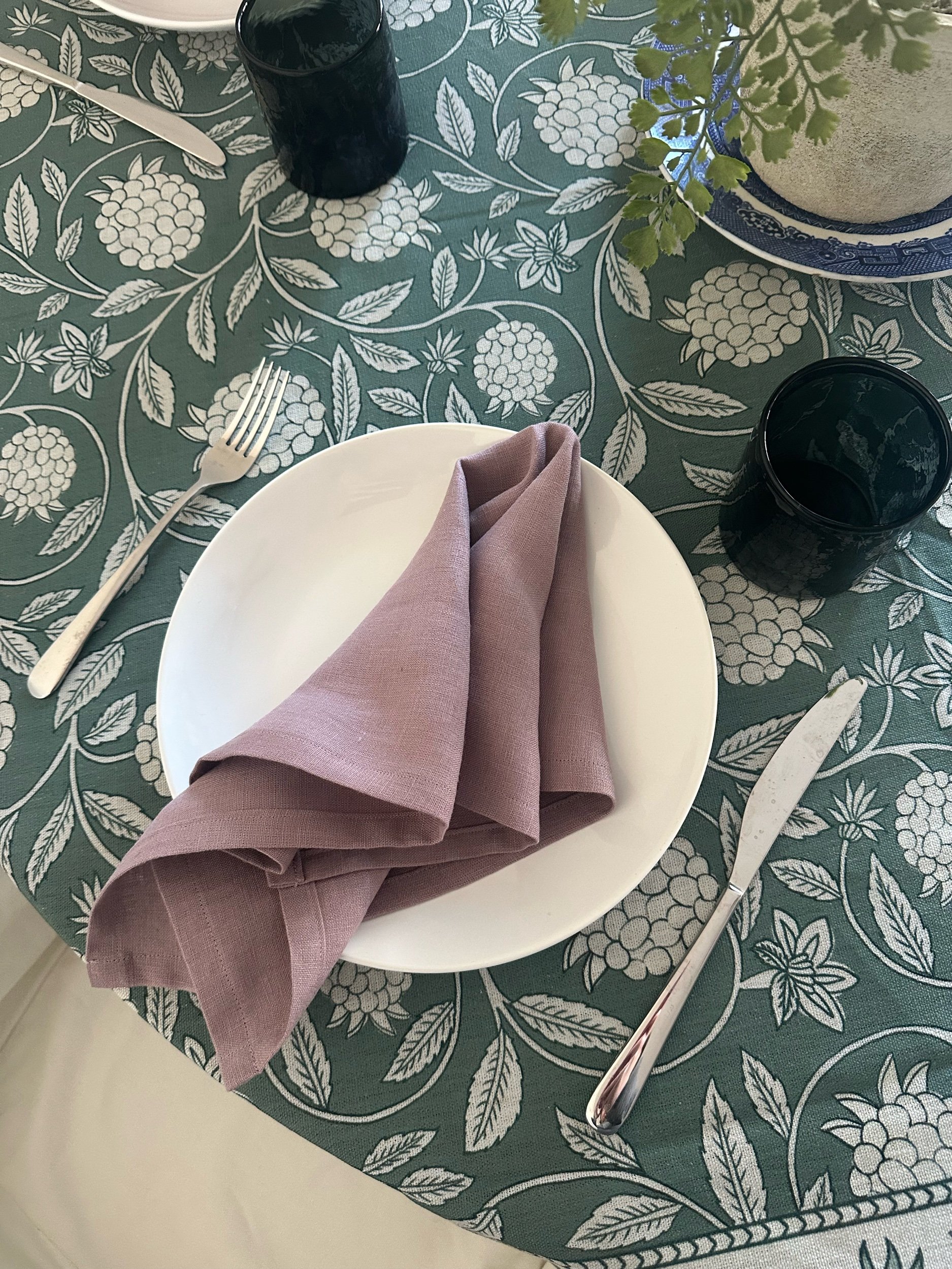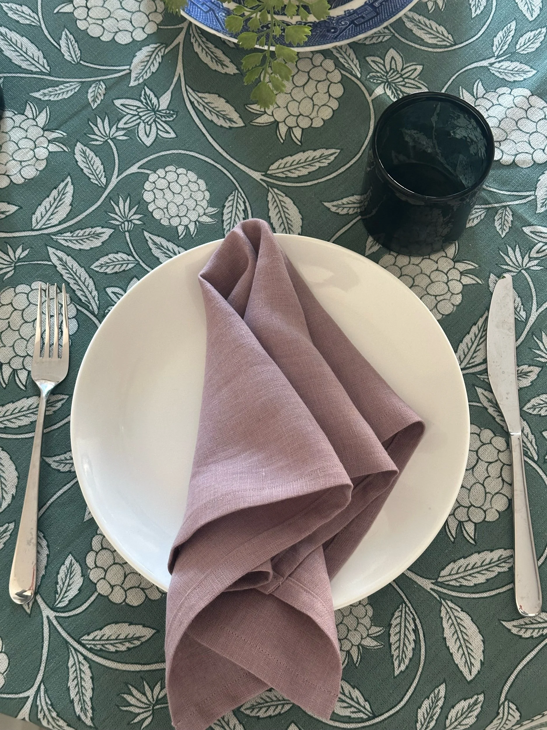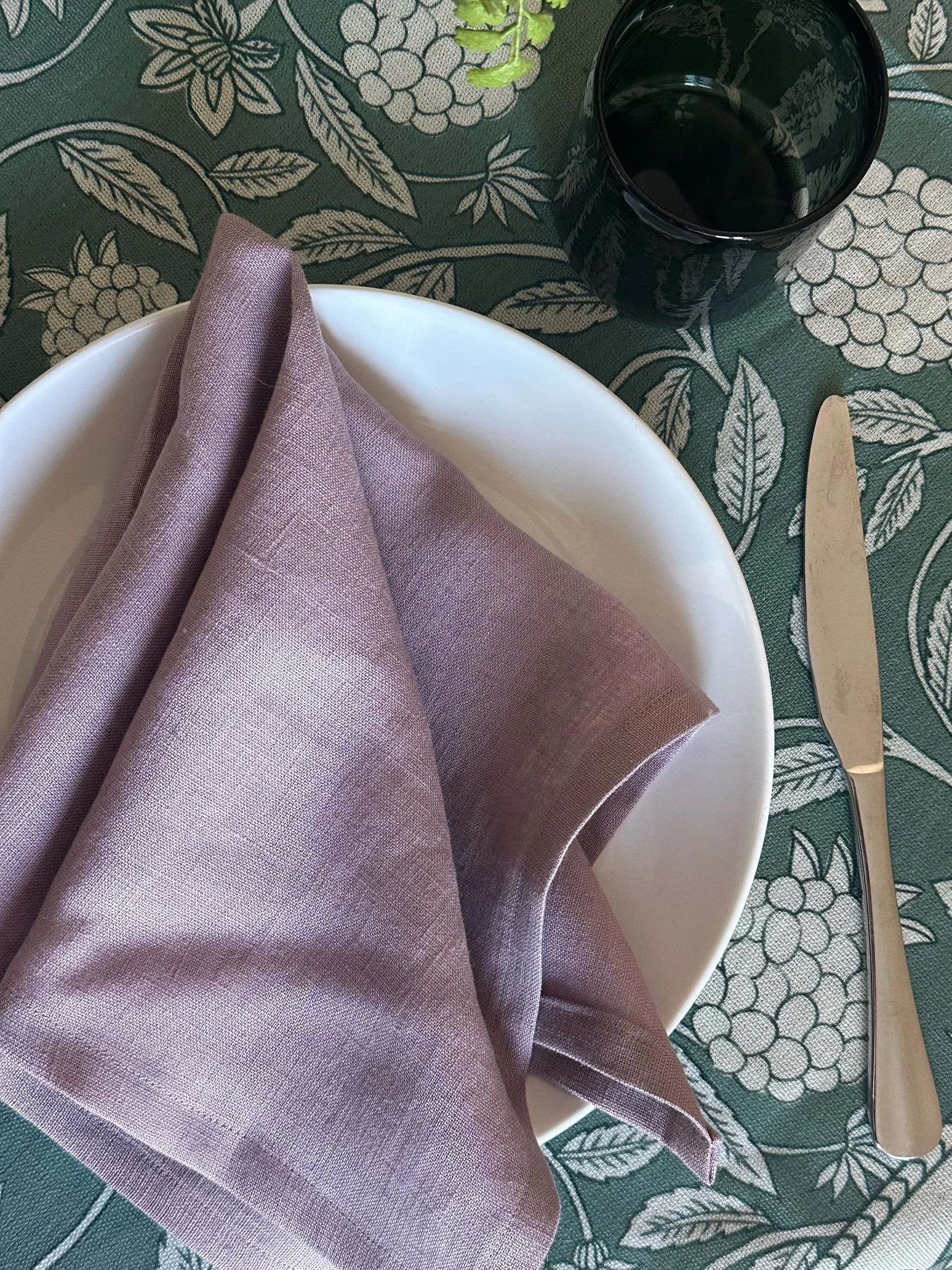 100% laundered linen napkin in our Lilac Linen. Linen is the perfect choice for a napkin due to its durability and high absorbency, improving in texture after every wash.